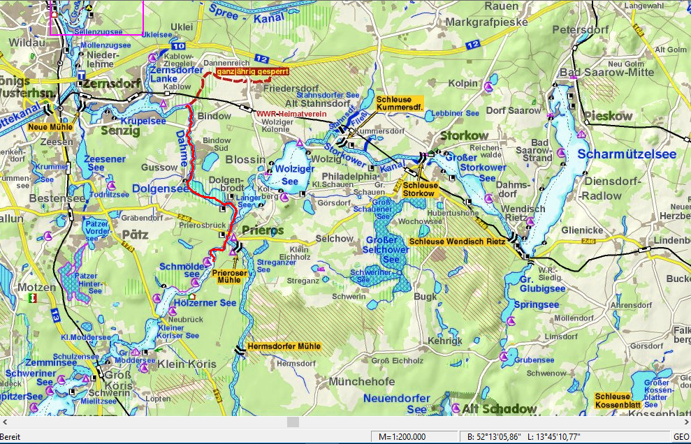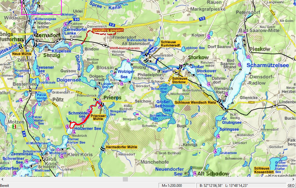 Dag 8, maandag 15 juni. Van Jägerbude via Dämeritzsee en Gosener Graben naar Seddinwall