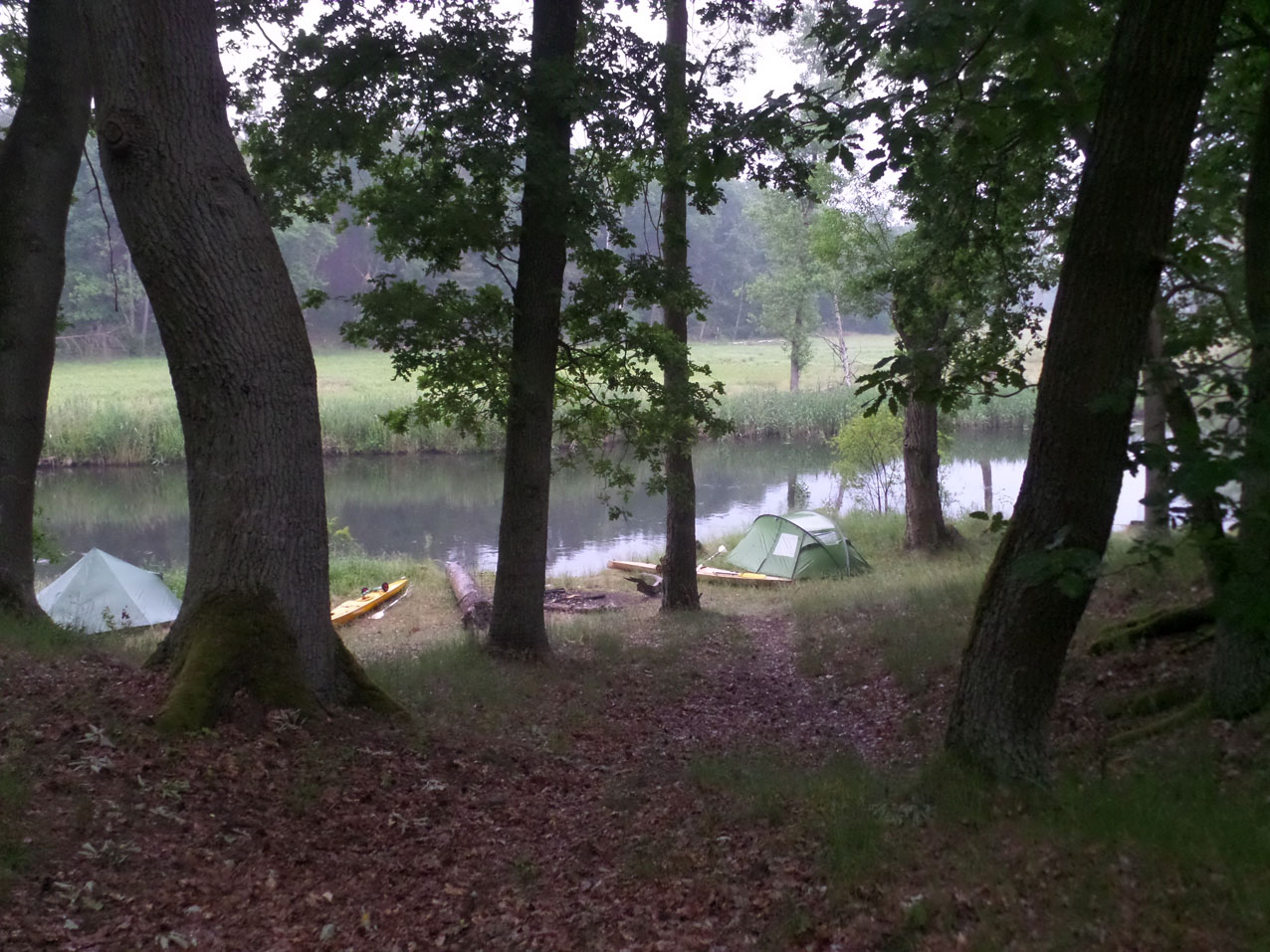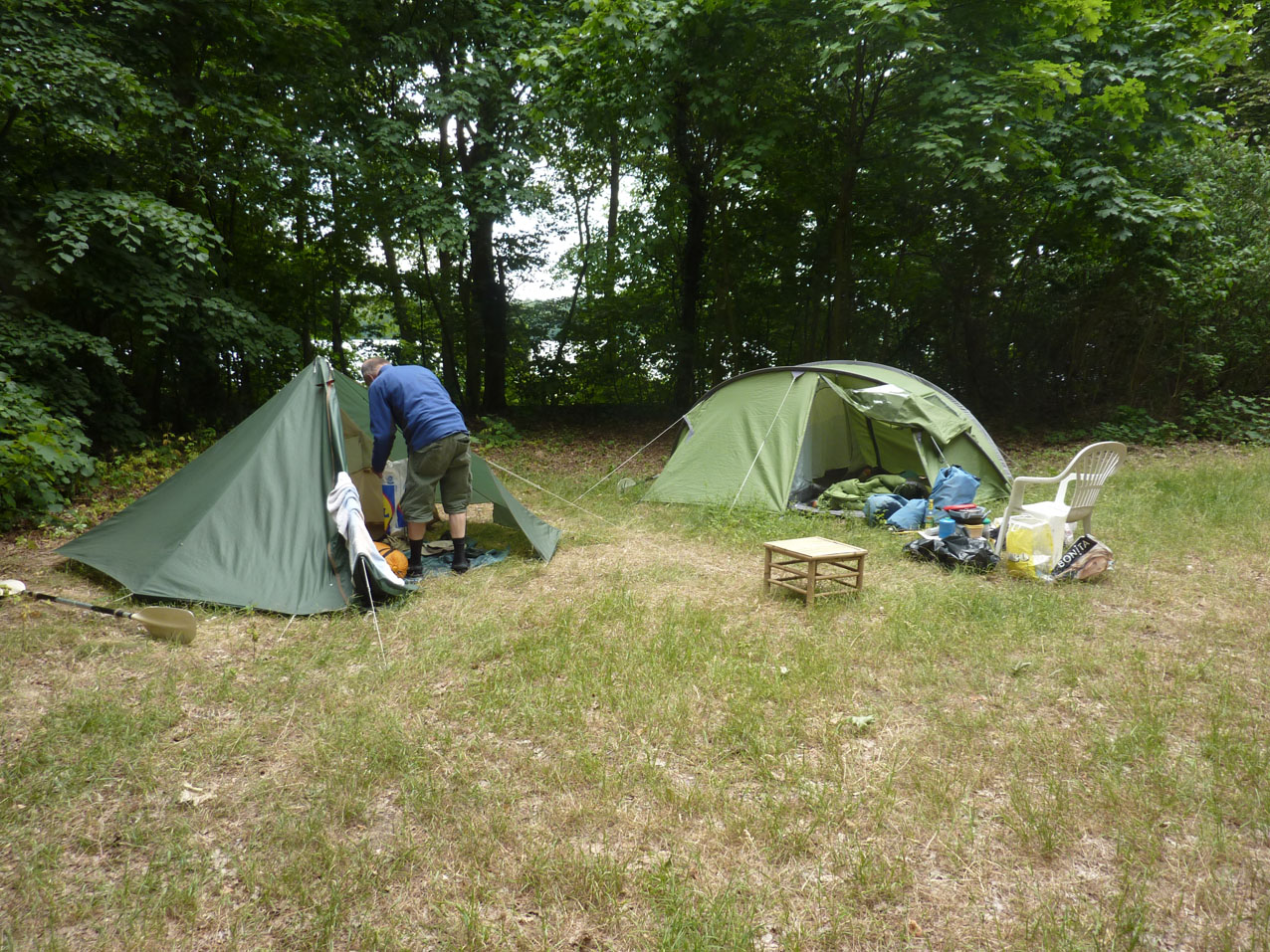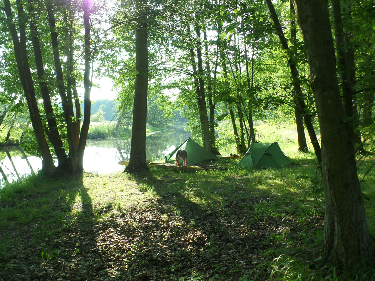Bivak aan de Drahendorfer Spree vlak bij de overdraagplaats naar het Oder-Spree Kanal.