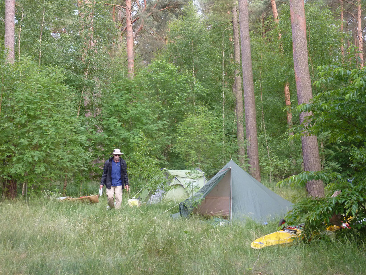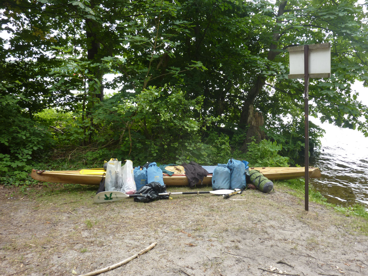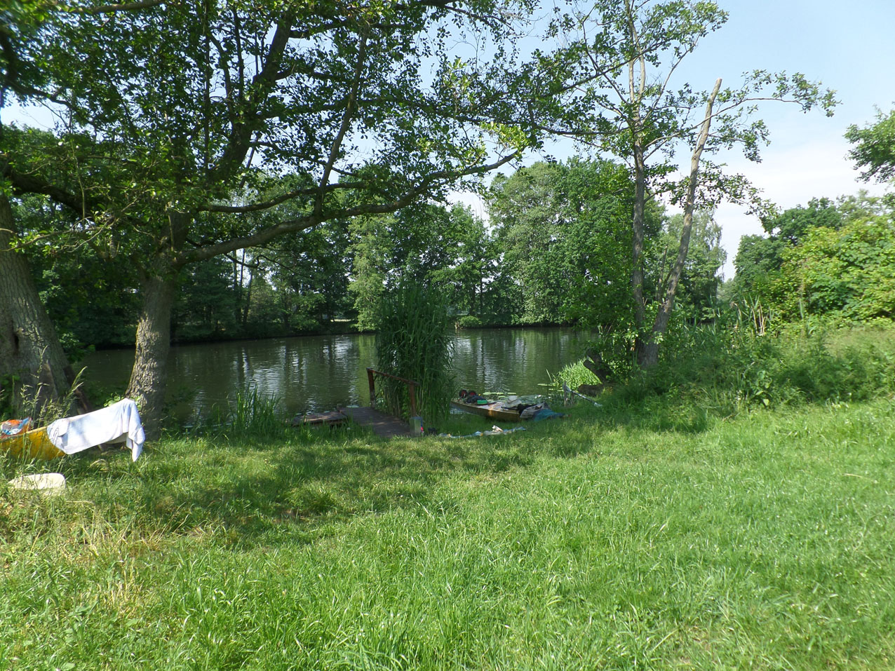 Bivak aan de Drahendorfer Spree vlak bij de overdraagplaats naar het Oder-Spree Kanal.