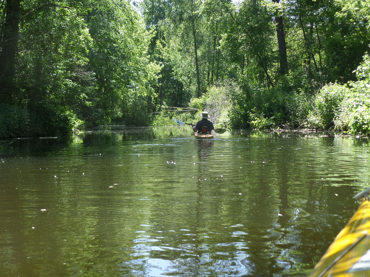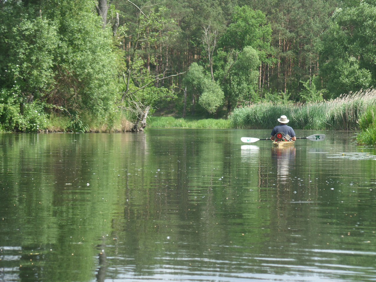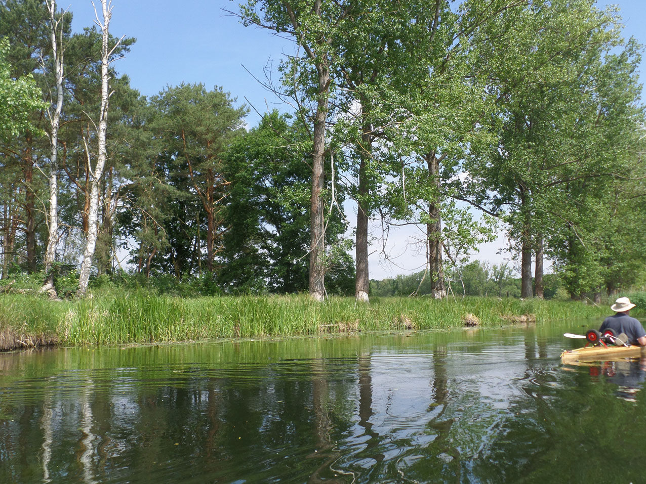 We wilden eerst nog een stuk verder naar het Spreewald varen. We hadden alleen geen zin om tegen de stroom in te peddelen en zijn toen maar rechtstreeks naar het sluisje in de Puhlstrom gegaan.