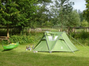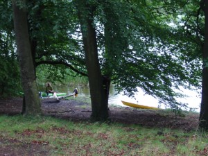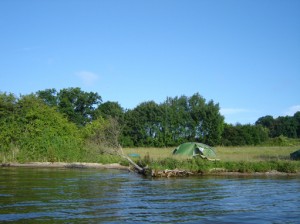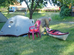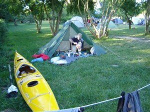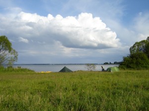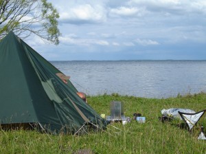 - Jan in zijn tentje op ons kampeerplekje aan de Müritz