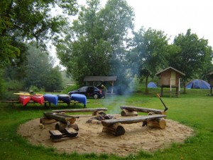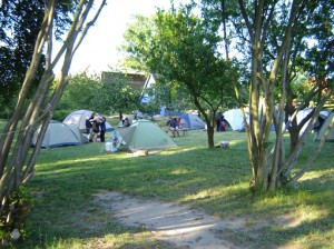Toen we daar met de auto aankwamen was er geen beheerder te bekennen. Eén huisje was bezet en de kampeerders zeiden dat we onze tent maar op moesten zetten want er zou om een uur of zes vast iemand langs komen. Alzo gedaan kwam er om half zeven iemand langs. We kregen een sleutel van het toilletgebouw en mochten de auto een eindje verder achter een hek wel een weekje laten staan.