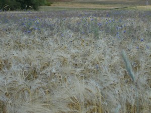 - Veld met graan en korenbloemen naast de overdraagplaats.