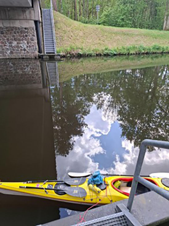 Kano afstand: Daniels beschrijft op zijn site https://dhwdaniels.nl, in zijn tochtverslag van juni 2012, de 540 km die hij in 16 dagen gevaren heeft met een gemiddelde van 33,8 km per dag. Ik heb in 24 dagen ongeveer 653 km gevaren met een gemiddelde afstand van 27,3 km per dag. In de overige 4 dagen dat ik niet kanode heb ik Rheinsberg, Berlijn, Potsdam en Pritzerbe bekeken en wat in de omgeving gefietst. Vaak maakte ik ook een wandeling voor, na of halverwege mijn dagtocht in de directe omgeving. Net hoe het uitkwam en waar ik zin in had. Er is genoeg te zien en ontdekken en het is ook wel prettig voor de spieren.