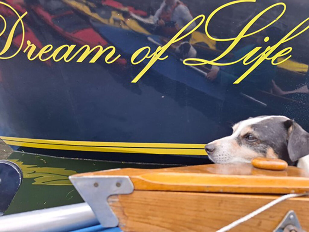 Regelmatig had ik leuke ontmoetingen met onbekenden als ships passing in the night. Zoals de jonge dame die haar antieke houten kano naar Frankrijk aan het overvaren was. Zo jammer dat we geen telefoonnummers uitgewisseld hebben want nu blijf ik mij de rest van mijn leven afvragen hoe haar tocht verder verlopen is.