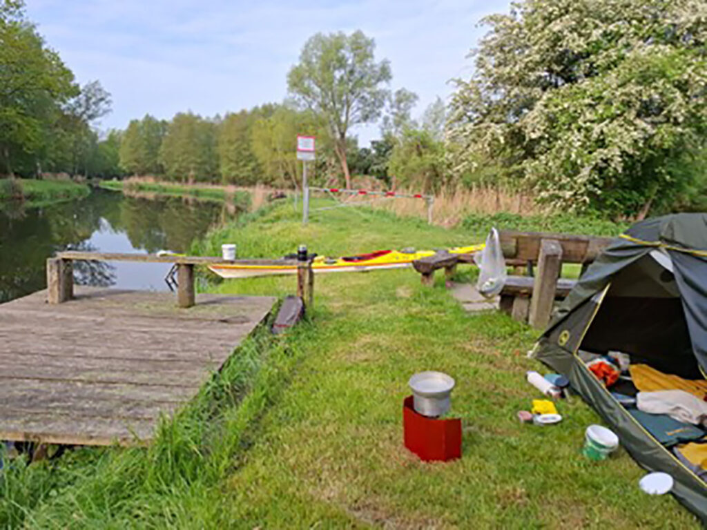 Wat betreft het kamperen had ik genoeg keus aan kleine campings en zeil-/roei-/kano-en/of watersportverenigingen aan het water. Allemaal gastvrij en voor weinig geld kon ik er mijn tentje opslaan en gebruik maken van de faciliteiten. De Geheimtipp bleek wel de Potsdamer Segler club Wiking op het piepkleine eilandje tegen het centrum van Potsdam. Verder waren er genoeg Wasserwanderrastplätze, Biwak und Trekkingplätze of andere plätze waar kamperen misschien niet altijd was toegestaan maar, voor mij alleen, geen problemen heeft gegeven. Op de kaart van Jübermann staan veel van die plekjes aangegeven.