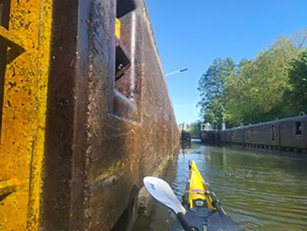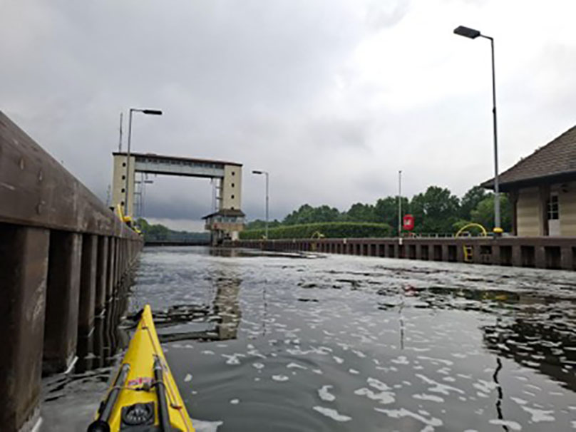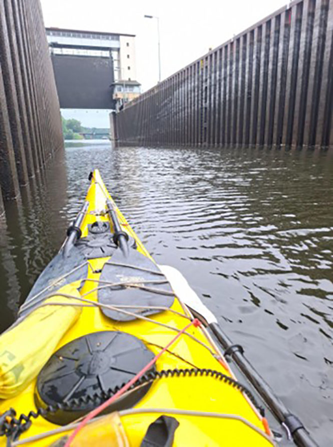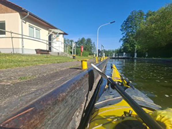 Op dit traject passeer je een kleine 40 sluizen in allerlei soorten en maten. Ze worden meestal op afstand bediend of zijn zelfbediening. Enkele keren moest ik telefoneren, maar de meesten werkten met een vanuit de kano goed bereikbare knop of hendel. In Nederland had ik dat weleens anders ervaren. Er waren hierbij een paar verrassingen.