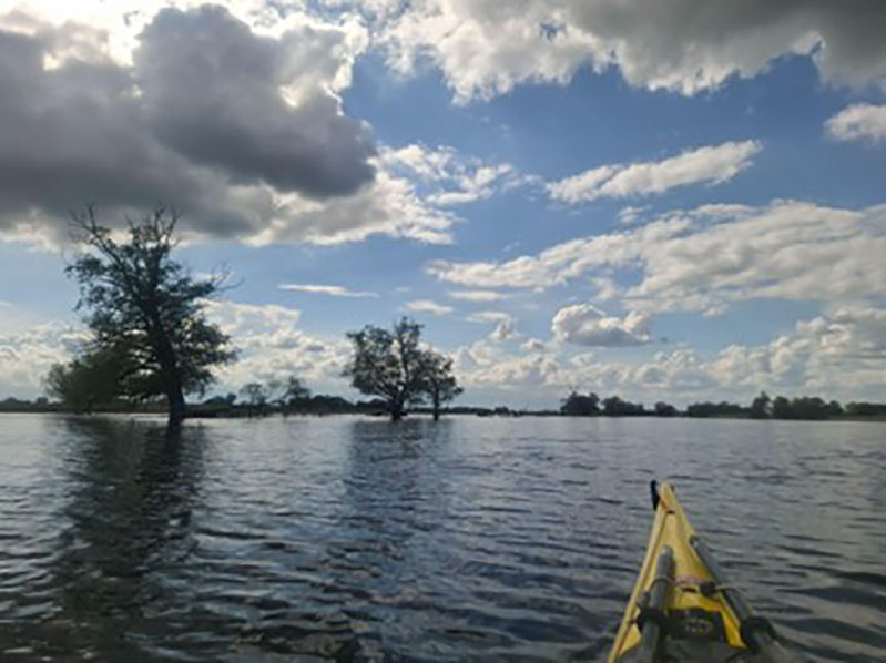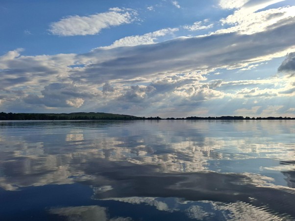 Het voordeel van alleen varen is ook dat je helemaal opgaat in je omgeving. Er was zoveel moois te zien; de natuur om mij heen, de rimpelingen in het water, prachtige luchten die weerspiegeld werden in het water. Ik was in goed gezelschap van vele vogels en had vooral goede gesprekken met de Grote Karekiet. Werd blij verrast door bevers, kraanvogels, ringslangetjes en grote roofvogels die jaagden op de Elbe.