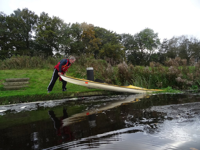 btDSC04761 Gepubliceerd 16 december 2017 op 638 × 478 in Stuwentocht 2017 Jan laat zijn kano na de stuw weer te water