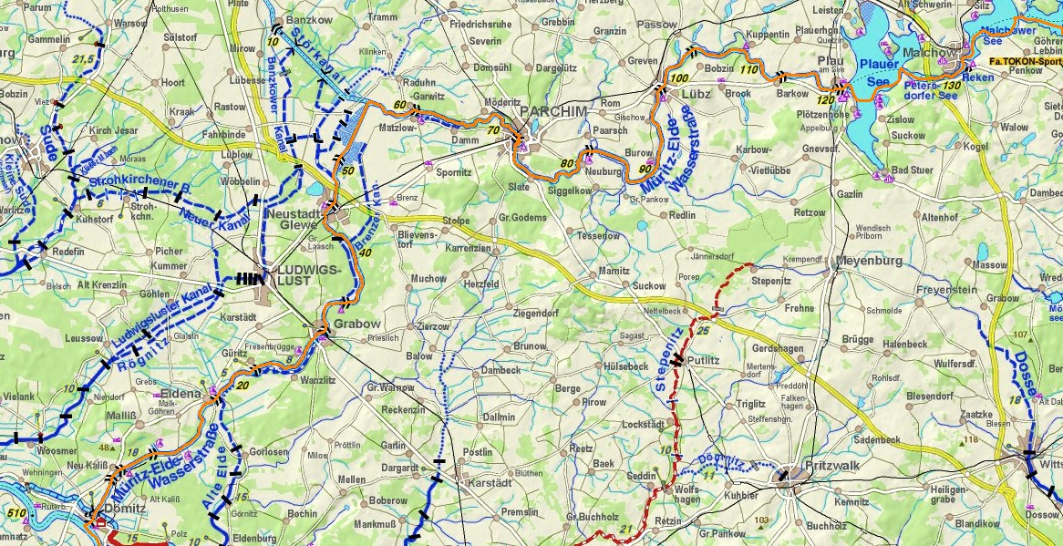 1KaartKajakroute2012JonaLB Gepubliceerd 26 november 2012 op 1166 × 599 in Kajaktocht Elde-Müritz-Havel-Elbe juni 2012